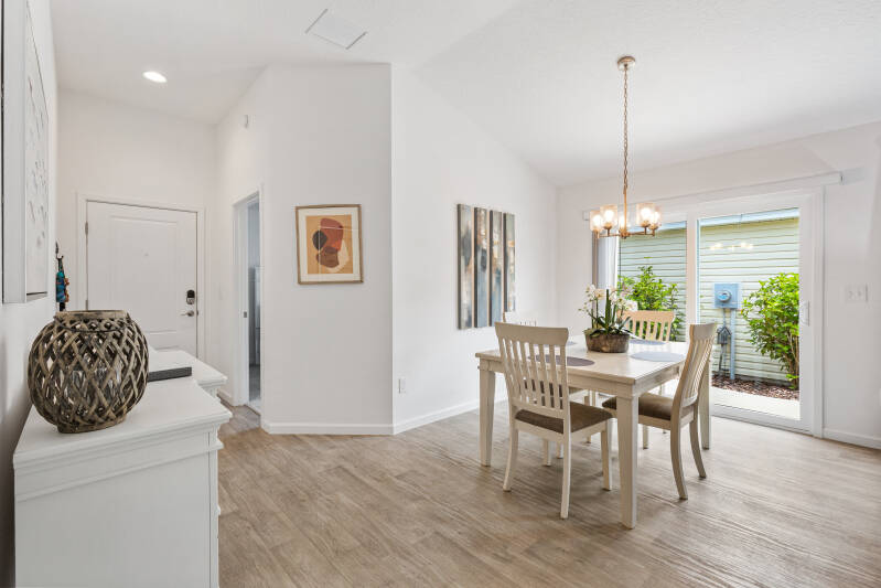 Enjoy the stylish stainless steel appliances, gas stove and upgraded kitchen Aide fridge with removable wine rack. White cabinets and plenty of seating at the dining room table with a leaf to extend to seat 6.